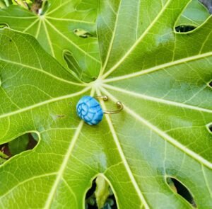 Peça feita manualmente em grés alusiva aos caracóis do mar, decorada com vidrado turquesa.