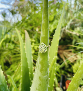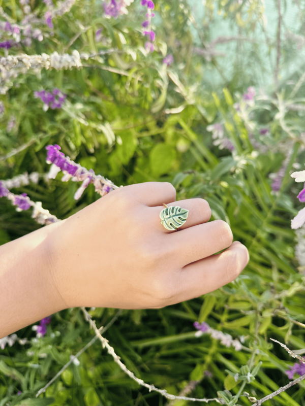 Anel com monstera feito à mão grés decorado com vidrado verde caldas