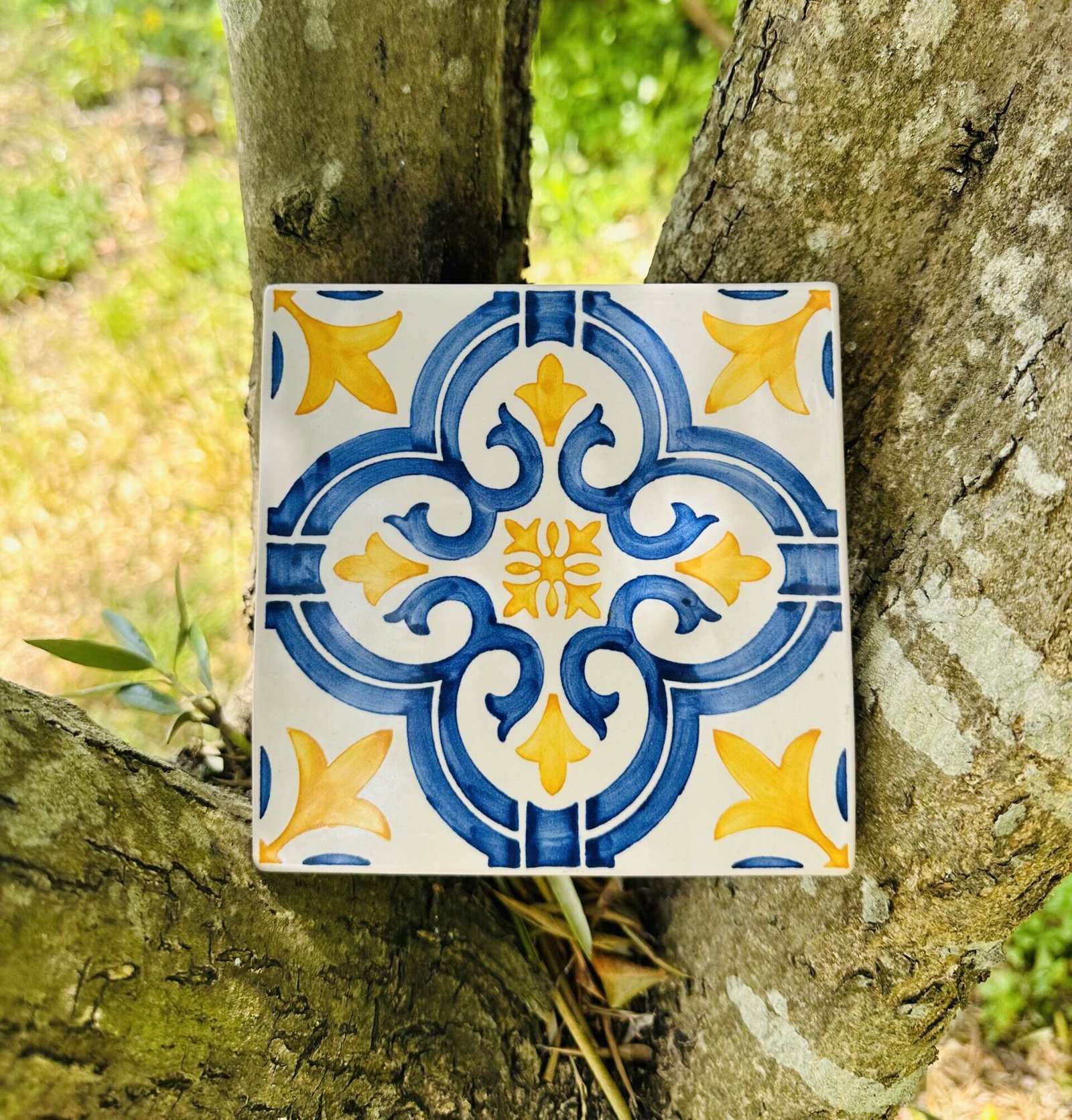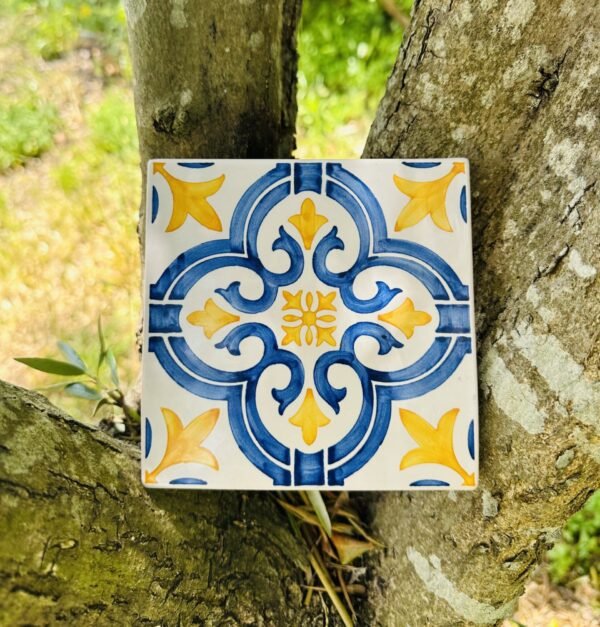 Réplica de azulejo padrão de Lisboa pintado à mão.