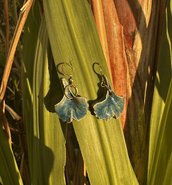 Brincos Folhas Gingko Azul | Grés