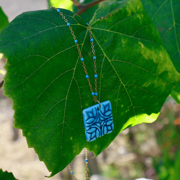 Peça moldada à mão em porcelana e decorado com vidrado turquesa. Alusivo aos tradicionais azulejos portugueses.