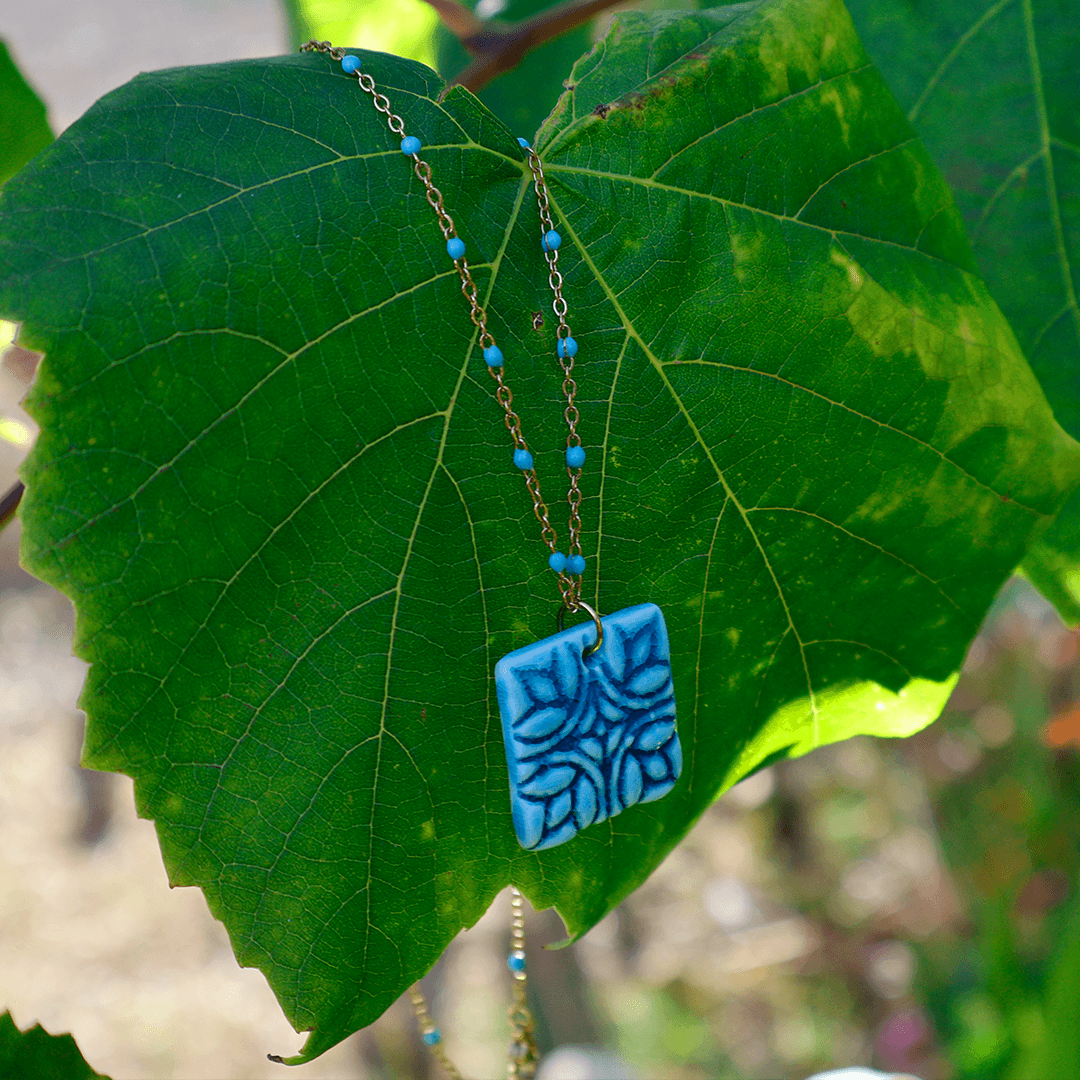 Peça moldada à mão em porcelana e decorado com vidrado turquesa. Alusivo aos tradicionais azulejos portugueses.
