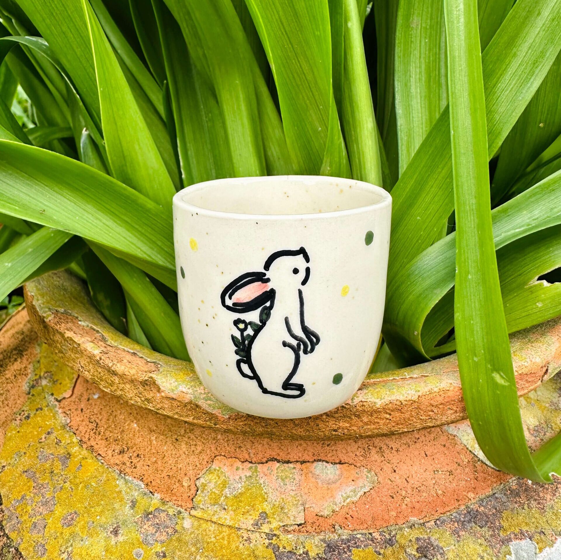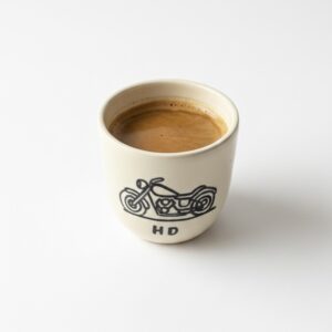 Copo de café moldado em grés e pintado à mão, totalmente personalizável.