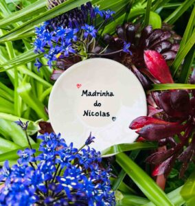 Porta jóias moldado em grés pintado à mão. Pode ser personalizado com frases, datas e simbolo coração.