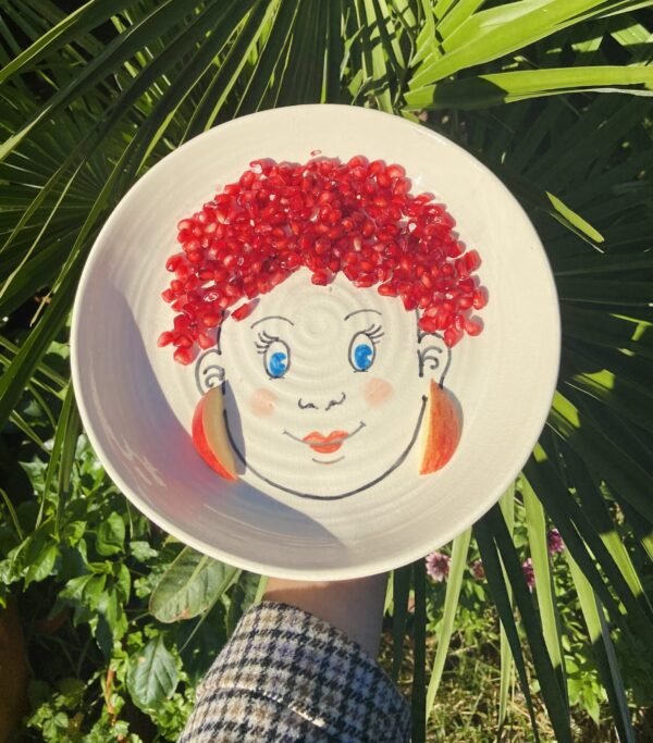 Prato em grés pintado à mão para incentivar as crianças a comerem legumes e frutas. Um momento lúdico que irá trabalhar a criatividade dos mais jovens.