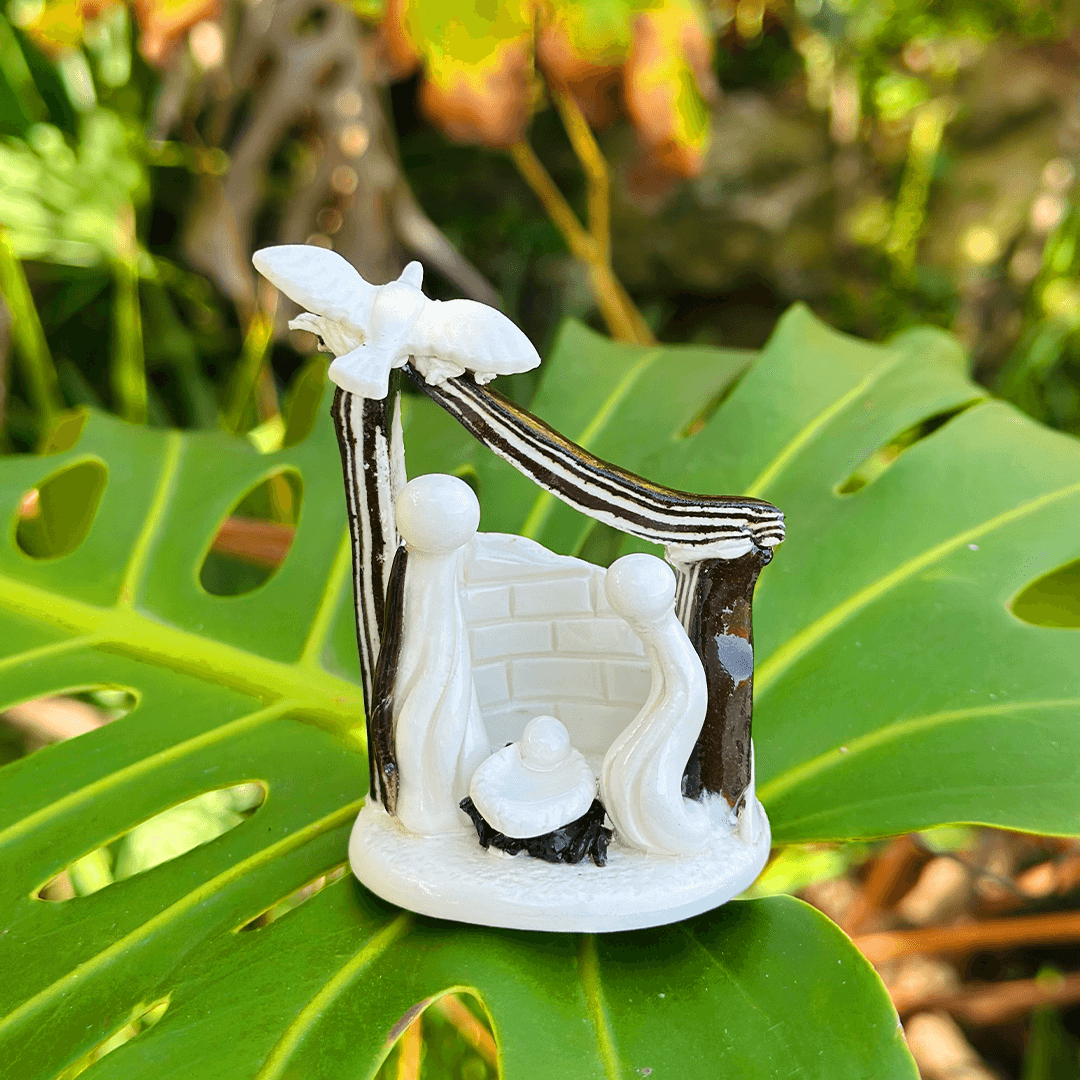 Presépio feito à mão em porcelana com mistura de terra stone cozido a alta temperatura para garantir maior resistência.